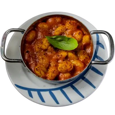 Gnocchi moelleux et généreux, servi avec une sauce tomate parfumée, fondue à la mozzarella et gratiné au parmesan