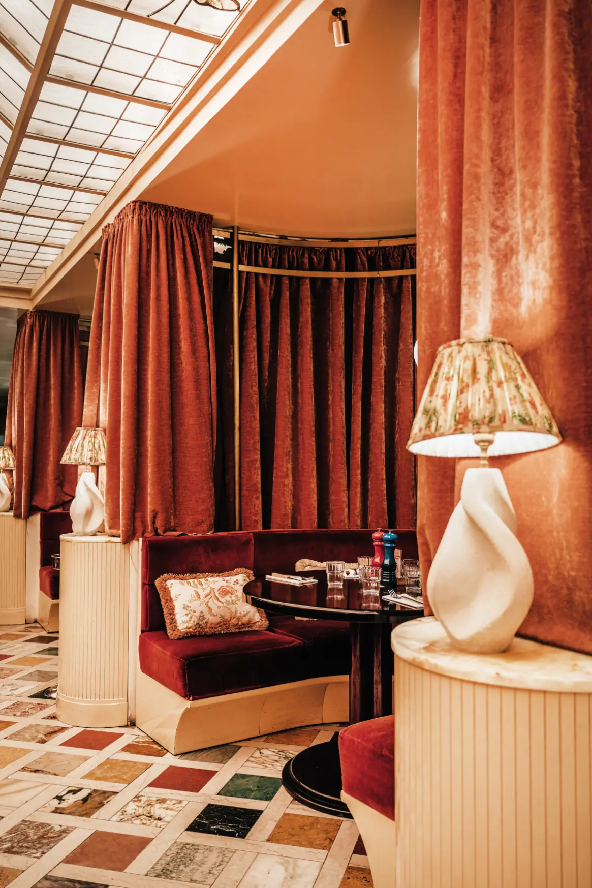 pour ses boutiques, cafés historiques et vie artistique, inspire le restaurant : un lieu lumineux et contemporain où